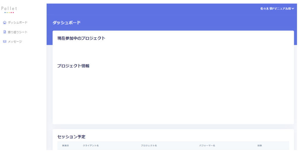 ログイン成功するとパフォーマー向けダッシュボードが表示されます